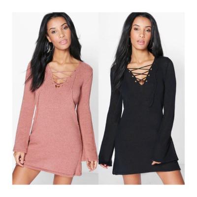 Boohoo Helena Bell Sleeve Lace Up Knitted Dress