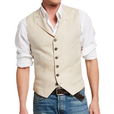 Brunello Cucinelli Mens Delave Linen High Button Faux-Lapel Vest