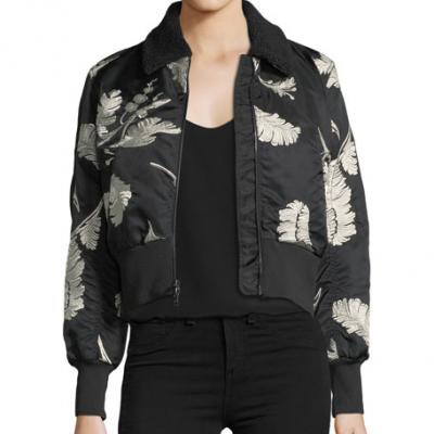cinq a sept Renley Embroidered Cropped Bomber Jacket