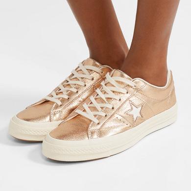 Converse One Star Ox cutout cracked-leather sneakers