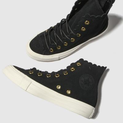 womens black converse all star hi frilly thrills trainers