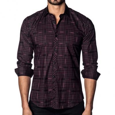 Jared Lang Mens Semi-Fitted Long-Sleeve Circular Jacquard Sport Shirt