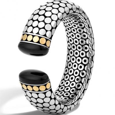 John Hardy Dot Large Kick Cuff w/ Black Onyx, Size M