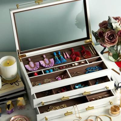 Large Antique Brass Jewelry Box in White Lacquer Kendra Scott