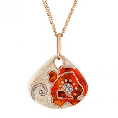 Nouvelle Bague 18k Rose Gold Fan Enamel Pendant Necklace w/ Diamonds