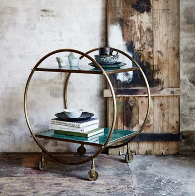 Rose and Grey Round Brass and Marble Drinks Trolley