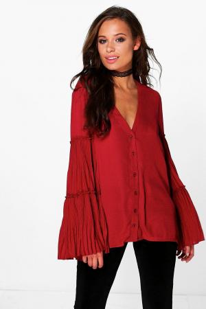 Amy Pleated Flute Sleeve Blouse at boohoo.com