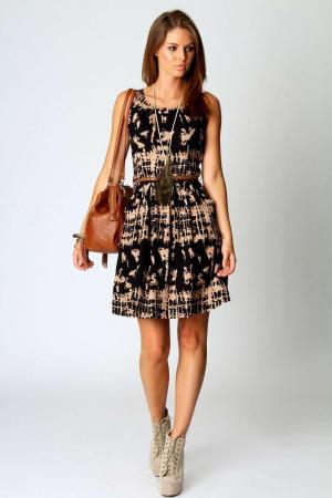Ashlie Printed Sleeveless Belted Dress Boohoo