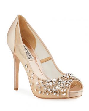 Badgley Mischka Pepper Crystal-Embellished Satin & Lace Pumps
