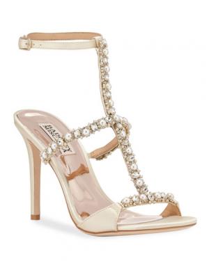 Badgley Mischka Yuliana Jeweled Satin T-Strap Sandals