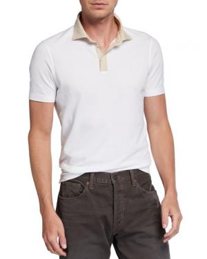 Brunello Cucinelli Mens Contrast-Collar Cotton Piquet Polo Shirt
