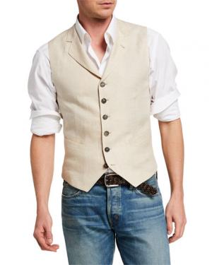 Brunello Cucinelli Mens Delave Linen High Button Faux-Lapel Vest