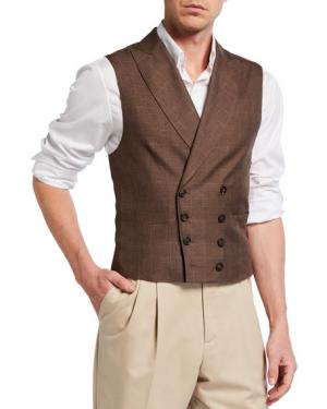 Brunello Cucinelli Mens Prince of Wales Wool-Blend Waistcoat
