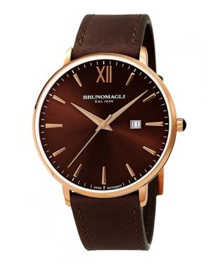 Bruno Magli Mens 42mm Roma Leather Watch w/ Date, Burgundy/Rose