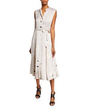 Equipment Clevete Button-Front Sleeveless Midi Silk Dress