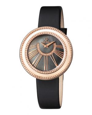Gevril Fifth Avenue 38mm Diamond Watch w/ Satin Strap, Black/Rose