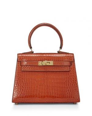 Hermès Kelly 20 Caiman Crocodile Top Handle Bag, Orange