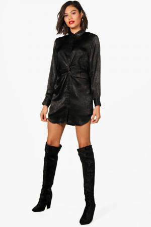 Isla Twist Front Hammered Satin Shirt Dress Boohoo