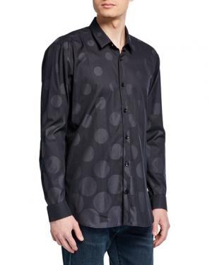 Jared Lang Mens Semi-Fitted Long-Sleeve Circular Jacquard Sport Shirt
