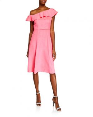 Julie Brown Emilie One-Shoulder Ruffle Fit-and-Flare Dress