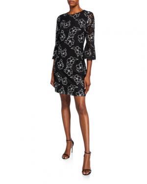 Karl Lagerfeld Paris Floral Bell-Sleeve Lace Sheath Dress