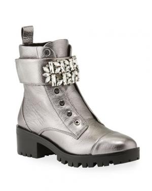 Karl Lagerfeld Paris Pippa Metallic Combat Zip Lug Boots
