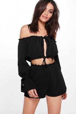 Lori Off Shoulder Frill Crop & Short Co-ord Set Boohoo
