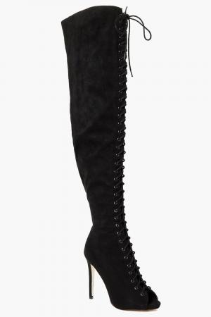 Lucy Lace Up Peeptoe Over The Knee Boot at boohoo.com