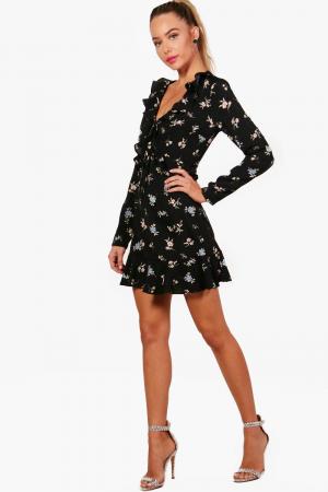 Maddy Ruffle Front and Hem Floral Tea Dress Boohoo