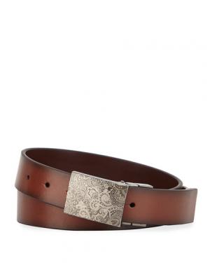 Robert Graham Mens Holmes Paisley-Etched Buckle Leather Belt