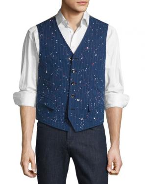 Robert Graham R by Robert Graham Jackson Paint-Splatter Pinstripe Vest, Navy/Multicolor