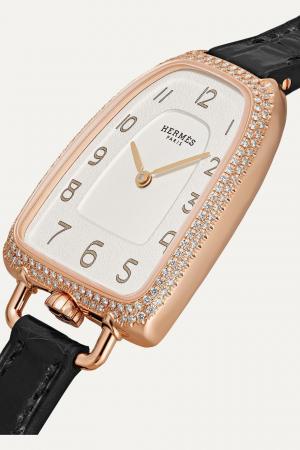Rose gold Galop dHermès 26mm medium 18-karat rose gold, alligator and diamond watch Hermès