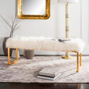 Safavieh Etta Faux Sheepskin Bench in Gold Foil