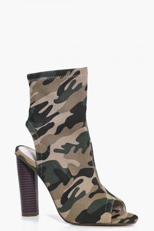 Sarah Camo Peeptoe Sock Boot - Boohoo