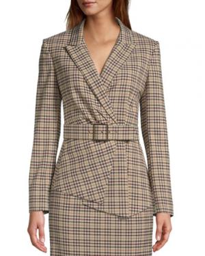 Tahari ASL Check Belted Asymmetrical Hem Jacket