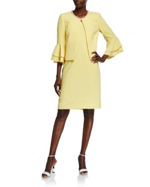 Tahari ASL Ruffle-Sleeve Open Jacket & Dress Set
