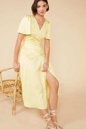 Yellow Floral Wrap Midi Dress Oasis