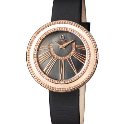 Gevril Fifth Avenue 38mm Diamond Watch w/ Satin Strap, Black/Rose