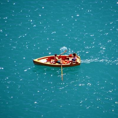 Row a boat across a lake