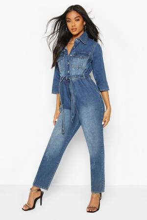 Belted Denim Boilersuit Boohoo UK