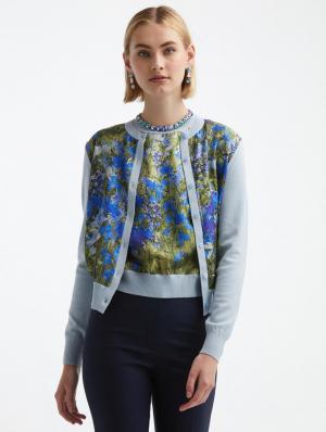 Floral Field Silk Inset Cardigan Blouses & Knits Oscar de la Renta Topaz Multi