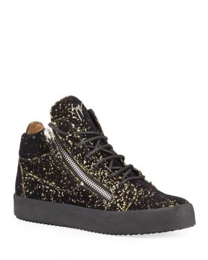 Giuseppe Zanotti Glitter Velvet High-Top Zipper Sneakers