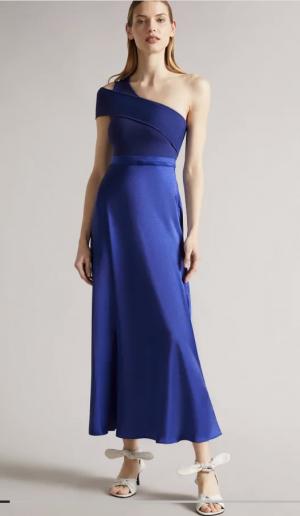 Ivena - Asymmetric Knit Bodice Dress With Satin Skirt