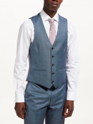 John Lewis Woven in Italy Super 130s Wool Sharkskin Waistcoat, Steel Blue