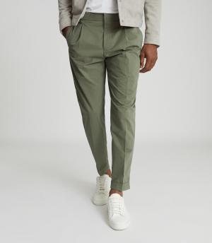 Ramsay Khaki Pleat Front Tapered Trousers – REISS