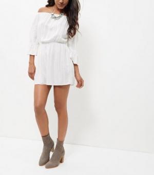 White Embroidered Trim Barot Neck Flutter Sleeve Playsuit - new look