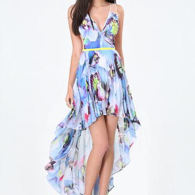 bebe PRINT PLEATED MAXI DRESS STYLE # 257790
