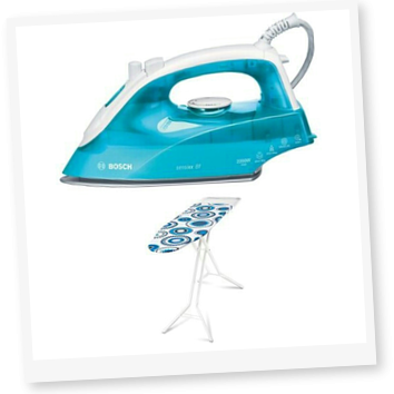 Bosch TDA2633GB Steam Iron, 2200 W - Blue/White and Ironing Board Bundle