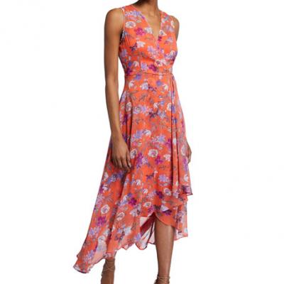 CALVIN KLEIN Floral-Print Faux-Wrap Dress