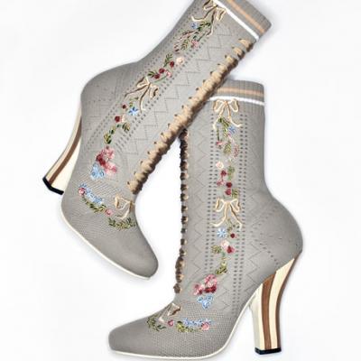 Fendi Embroidered Knit 100mm Bootie, Gray